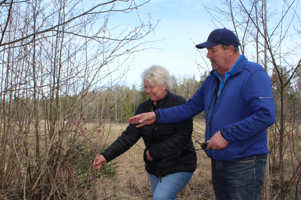 Längs en gångstig i Görvälns naturreservat kvittrar fåglarna i kör och små rosa blommor lyser upp vägkanten i den annars kala skogen. Det är busken tibast som blommar på bar kvist, och för Viksjöborna Janne och Christel Berg är det ett av de säkraste tecknen på att våren är här.